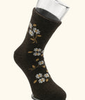 Flower Pattern Brown Wool Socks made by Tod Oims, in Ulaanbaatar, Mongolia.