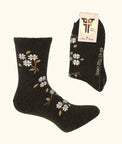 Design: Crafted from premium sheep wool, these socks feature an elegant floral design that elevates everyday comfort. The fitted elastic cuff adapts seamlessly to your ankle or shin, providing a secure yet gentle hold.