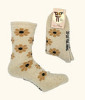 Flower Pattern Ivory Wool Socks made by Tod Oims, in Ulaanbaatar, Mongolia.
