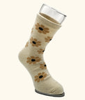 Design: These ivory wool socks blend timeless style with functional design, showcasing a refined floral motif. The adjustable elastic band at the cuff ensures a personalized fit whether worn at the ankle or extended up the shin.