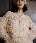 Design: This textured zip-front cardigan features sculptural raised motifs and soft fringe detailing for a distinctive, tactile finish.