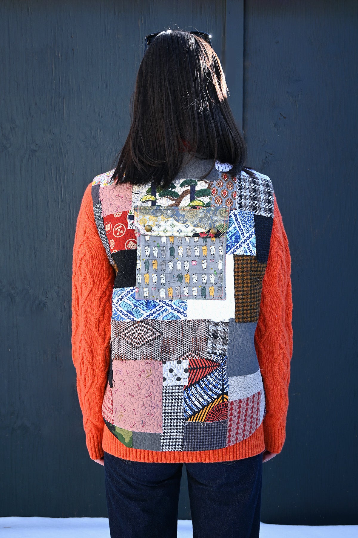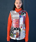 Japanese Cotton, quilted patchwork vest, made by Baba brand, in Ulaanbaatar, Mongolia.