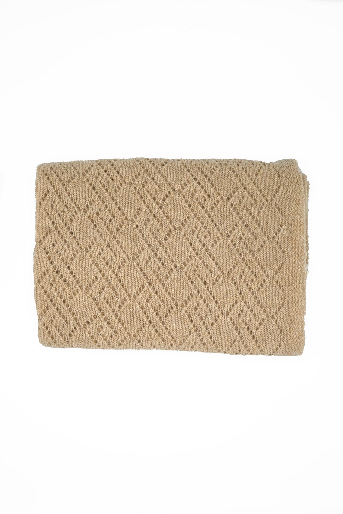 Organic Cashmere Knitted Beige Scarf made by Eeltei Baylag, in Ulaanbaatar, Mongolia.