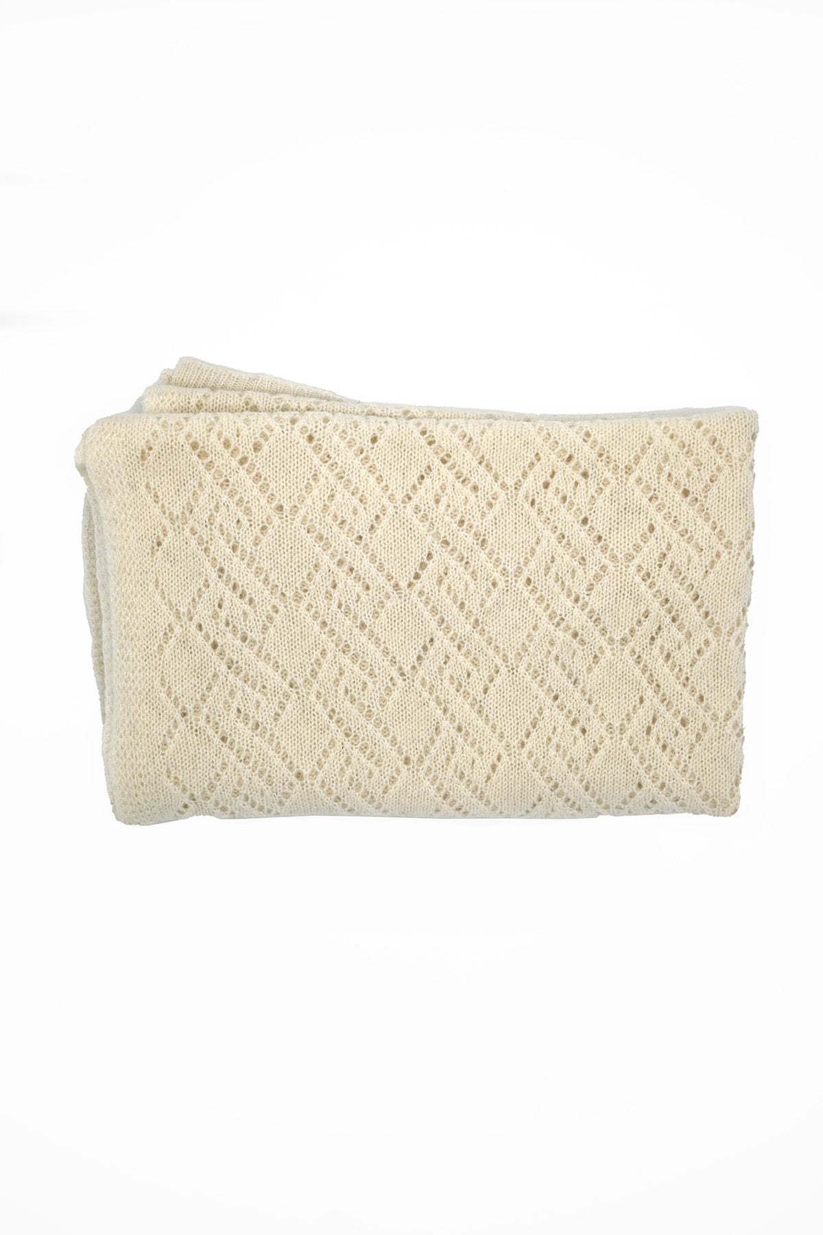 Design: Crafted from pure, undyed cashmere sourced from Mongolian mountain goats, this open-knit shawl embodies timeless elegance. Its natural fibers are inherently soft, breathable, and temperature-regulating, perfect for layering across seasons.